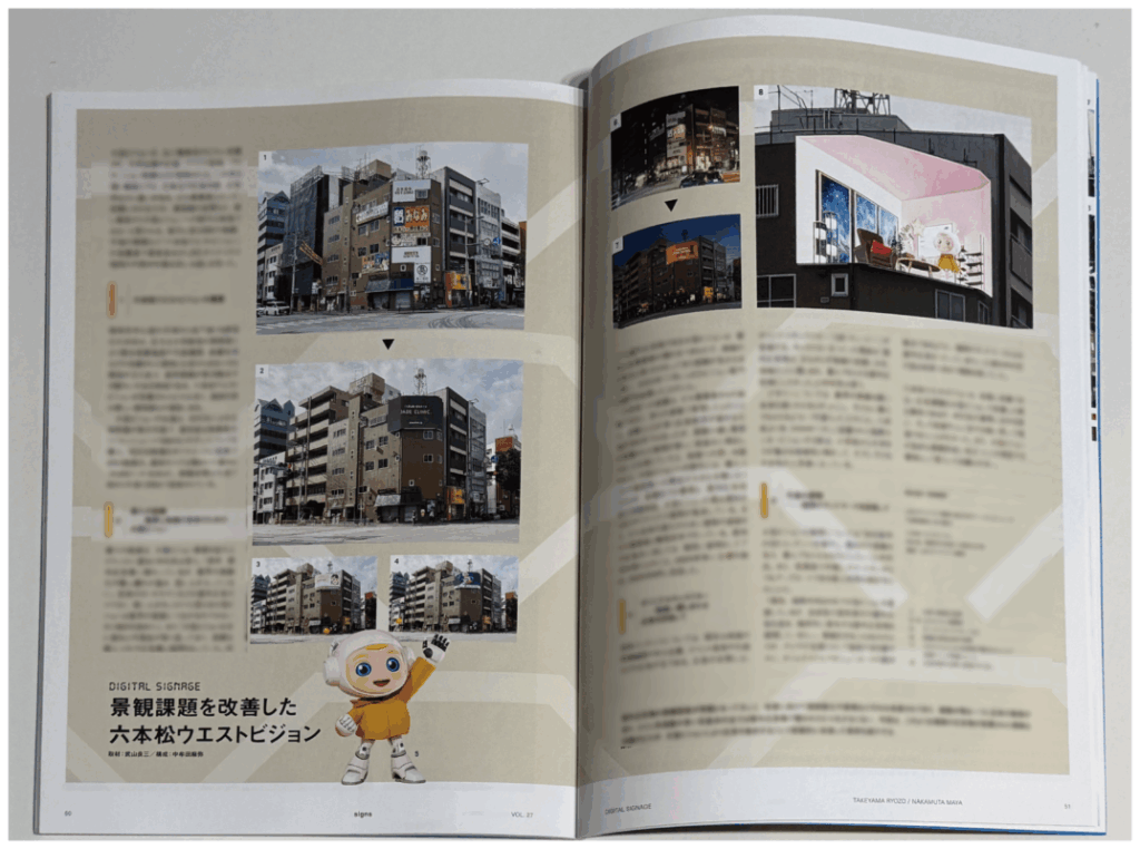 「Signs」は、屋外広告・サイン業界における最新の事例や技術、デザインを紹介する専門誌であり、全国の業界関係者が目にする媒体です。